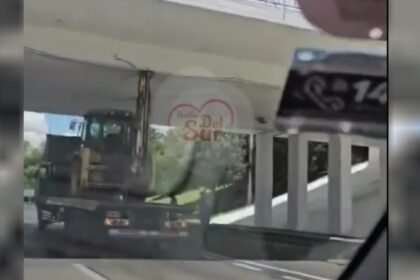Un camión que transportaba una excavadora quedó atrapado bajo el puente de la Avenida de Circunvalación en la provincia de San Juan, en un insólito accidente que fue registrado en video por transeúnte...
