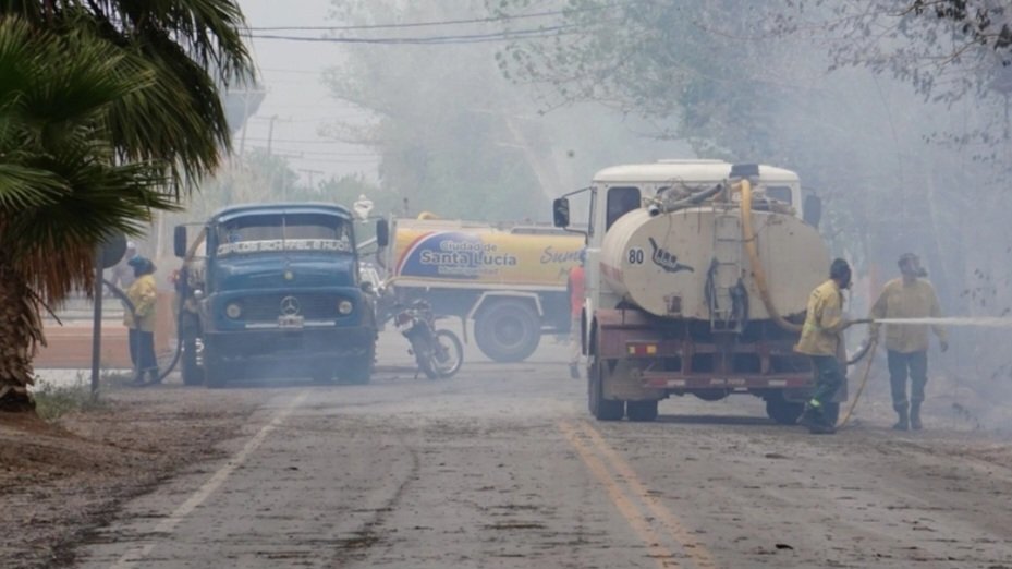 Un incendio iniciado en una finca del departamento Santa Lucía se extendió rápidamente y alcanzó una vivienda lindera, generando daños significativos en ambas propiedades.