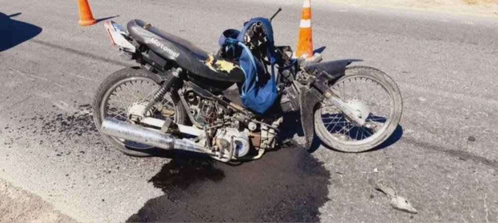 La motocicleta quedó literalmente partida en dos tras el impacto, lo que da cuenta de la violencia del choque.