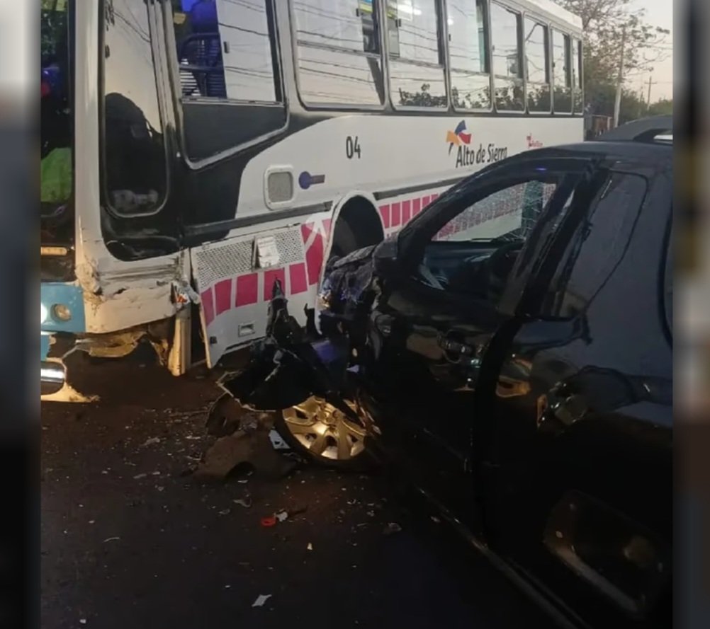 Según las primeras informaciones, el accidente se produjo en una zona de tránsito habitual, cuando el automóvil cruzó de carril de manera repentina e impactó de frente contra el colectivo que circulaba en sentido contrario. Como consecuencia del fuerte choque, ambos vehículos sufrieron importantes daños materiales.