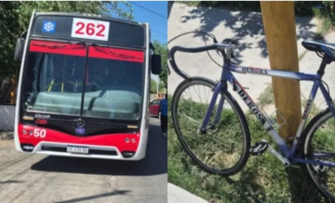 En el cruce de calle Sarmiento y calle Balaguer del departamento de Santa Lucía, un ciclista de 47 años fue trasladado al hospital con un fuerte golpe en la cabeza luego de ser embestido por un colectivo de la línea 262.