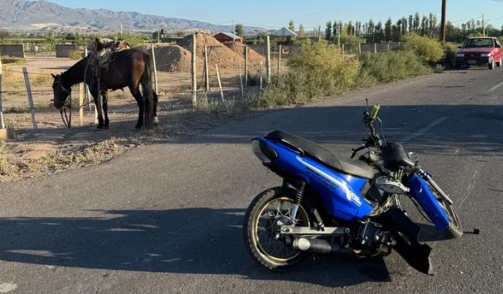 Un joven de 20 años resultó gravemente lesionado en un siniestro vial ocurrido este lunes en la provincia de San Juan, cuando su motocicleta colisionó contra un caballo suelto que se encontraba sobre la vía, provocando que el conductor perdiera el control del rodado y cayera al pavimento. El impacto fue de tal magnitud que la moto sufrió importantes daños y el motociclista debió ser ingresado de urgencia en un centro asistencial para recibir atención médica por las heridas sufridas, las cuales fueron consideradas de gravedad por los profesionales de la salud. Las circunstancias precisas del choque están siendo investigadas por las autoridades competentes para determinar cómo y por qué el equino estaba en la calzada al momento del accidente.
